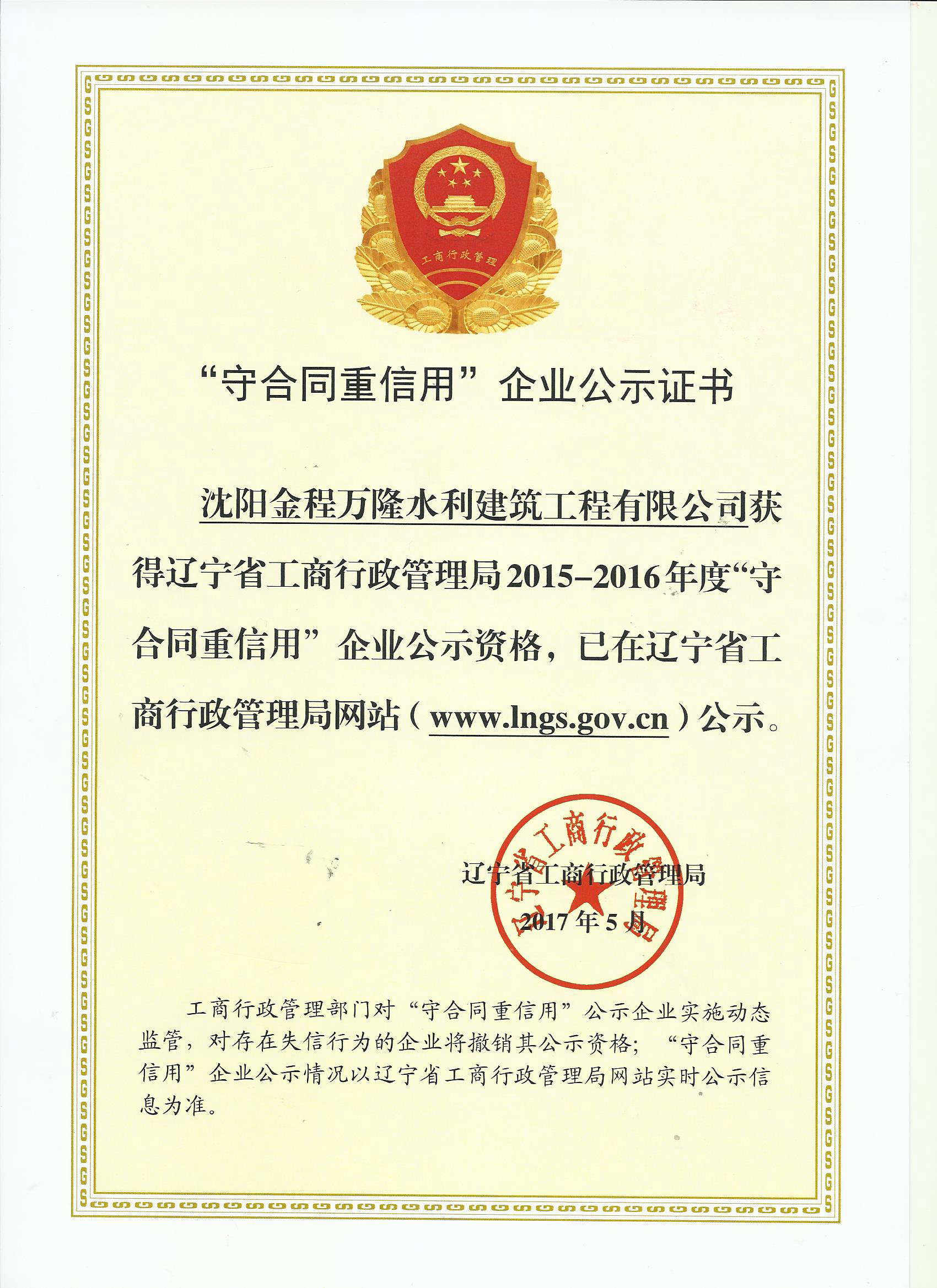 2016年省“守合同重信用”